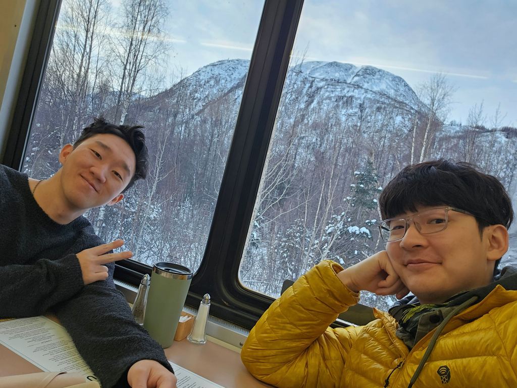 我们一大早搭上开往 fairbanks 的极光列车,十二个小时的旅程,列车员在站台上报备着车厢,一瞬间把我拉回了小时候最爱的 polar express。一个小男孩和他的伙伴,在圣诞前夕登上了前往北极的列车。